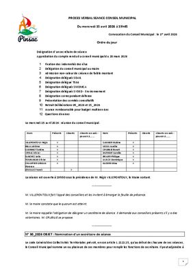 Procès-Verbal Conseil Municipal du Mercredi 15 Avril 2026