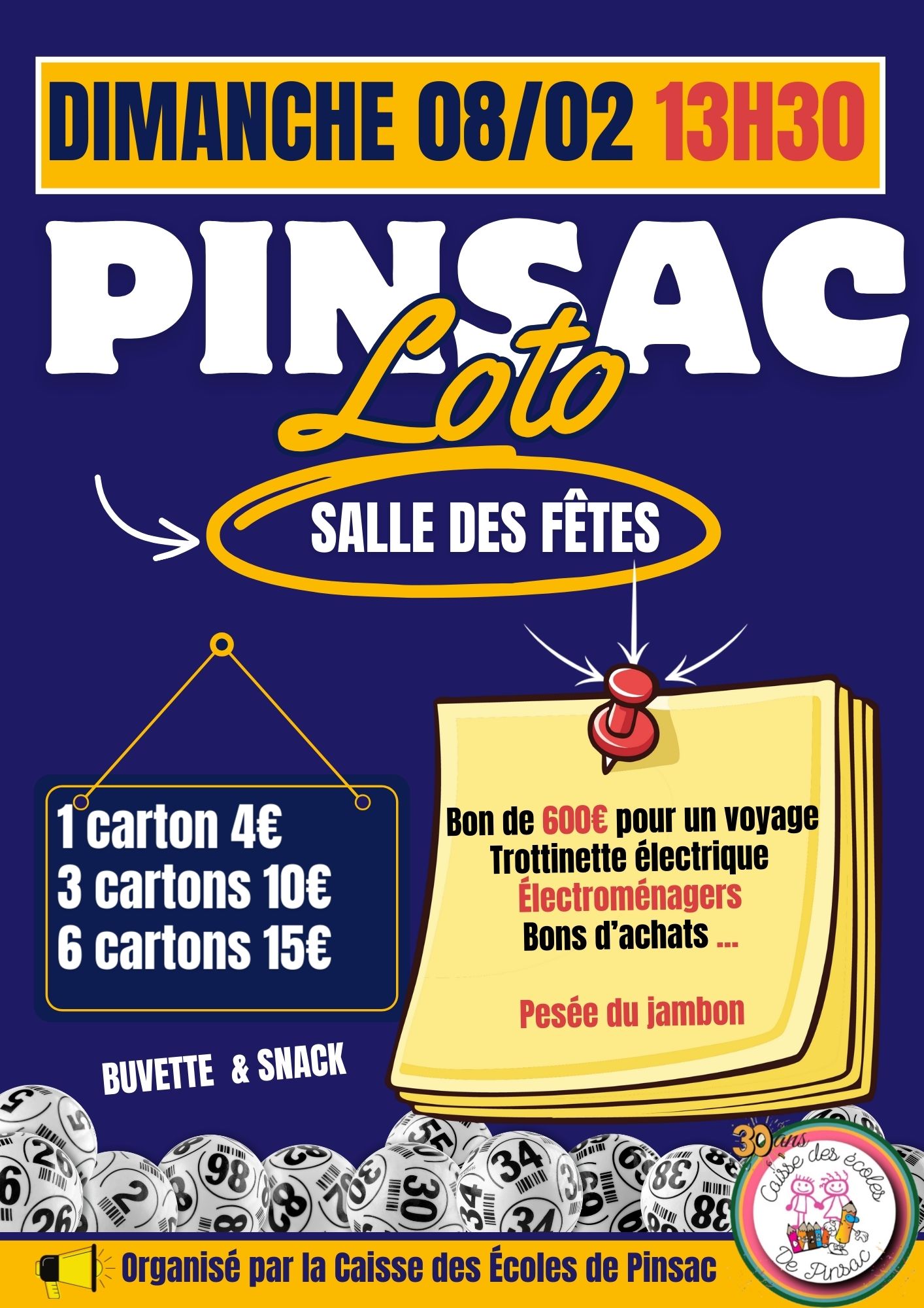 Loto de l’école de Pinsac Dimanche 08 février 13h30