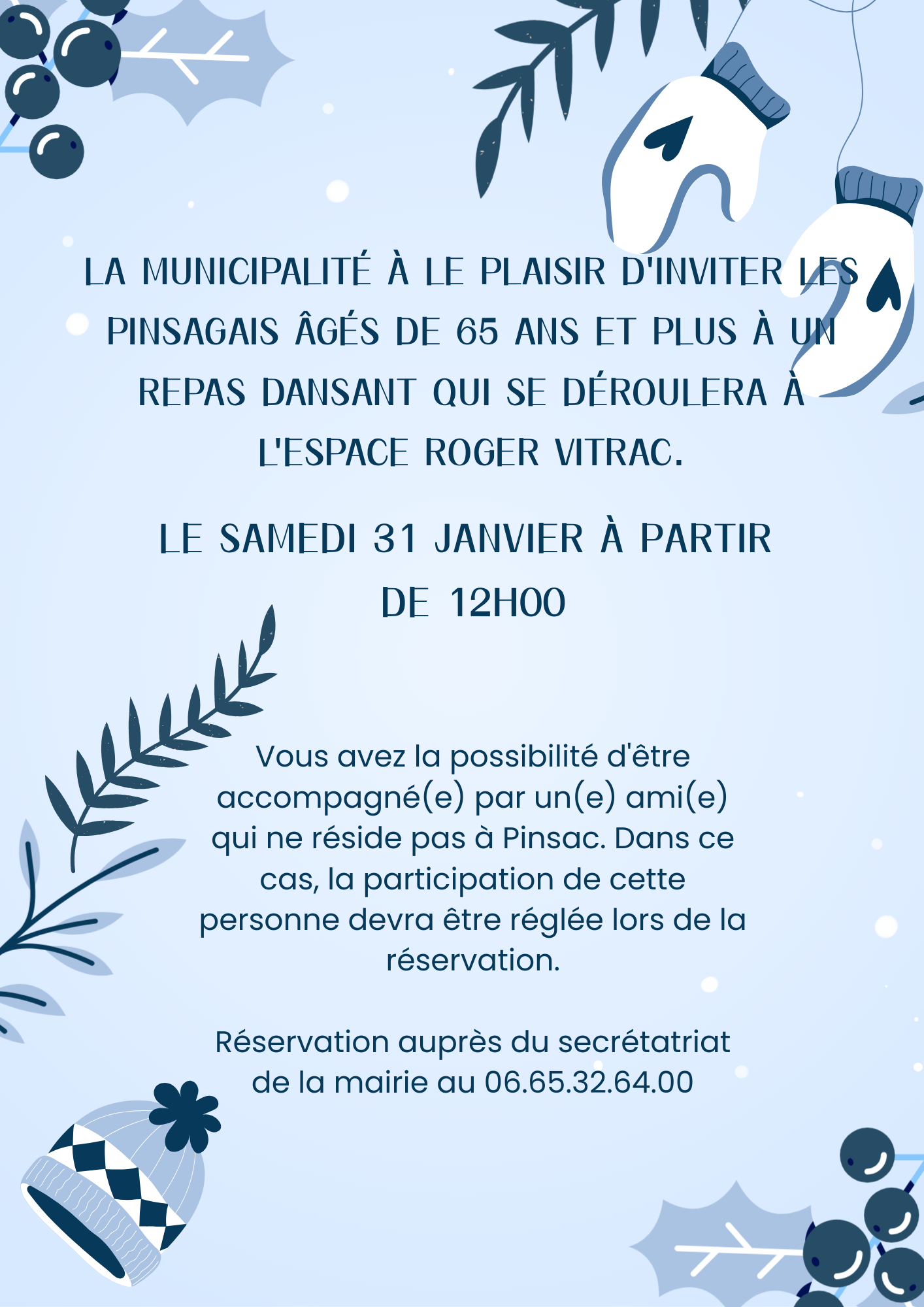 Repas des anciens des habitants de Pinsac samedi 31 janvier à 12h00